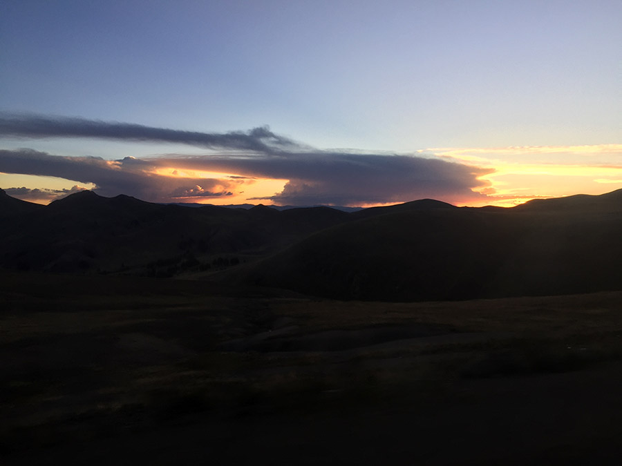 Back on the mainland, our bus carried on, past a brain-melting Bolivian sunset that looked like ho-hum nothing in all of the 400 photographs I took of it, until we reached the point that night where the bus had to cross Lake Titicaca. This involved all of us getting off the bus and boarding a cramped ferry, while the bus rolled onto an impossibly janky barge that dipped down at the front end until it was nearly taking on water, then slowly and precariously crossed the entire lake that way.