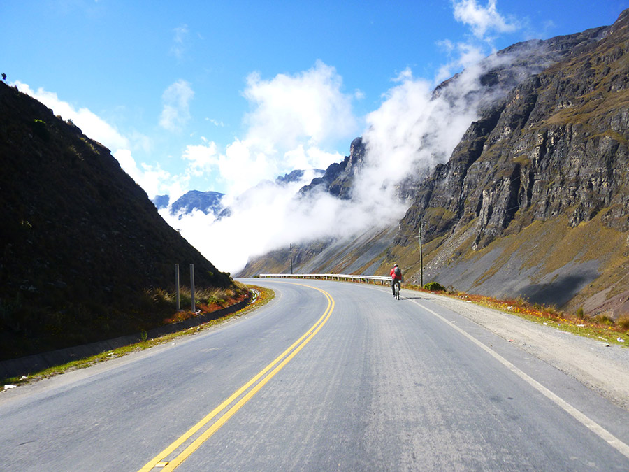 The road snaked around the mountains all around us as we gulped in the thin air.