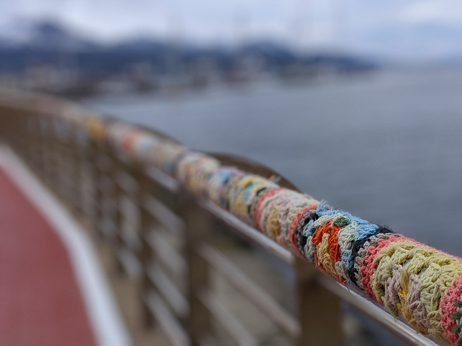The walking path along the waterfront features this charmingly crocheted railing cover, clearly a gift form Argentina's grandma.