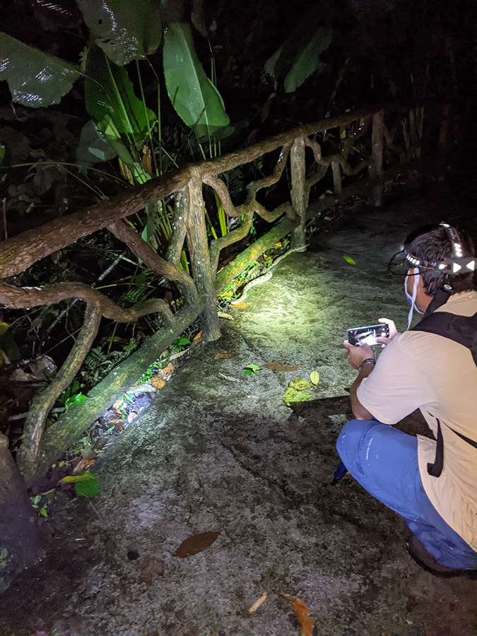 My naturalist guide Jerold led me through the pitch-black jungle as the rain began to hammer down.
