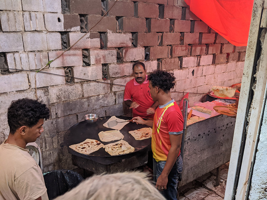 We ate almost all of our Hadibo town meals at the restaurant immediately next door to our hotel, which was a funny mix of elements. No one there spoke any English at all, so if Bilal, the only Arabic-speaker in our group, hadn't come to breakfast yet I was totally screwed for finding something vegan. But when they weren't busy bringing me eggs or eggs or more eggs, they made amazing delicious flatbread and Mexican beans with lime. Go figure.